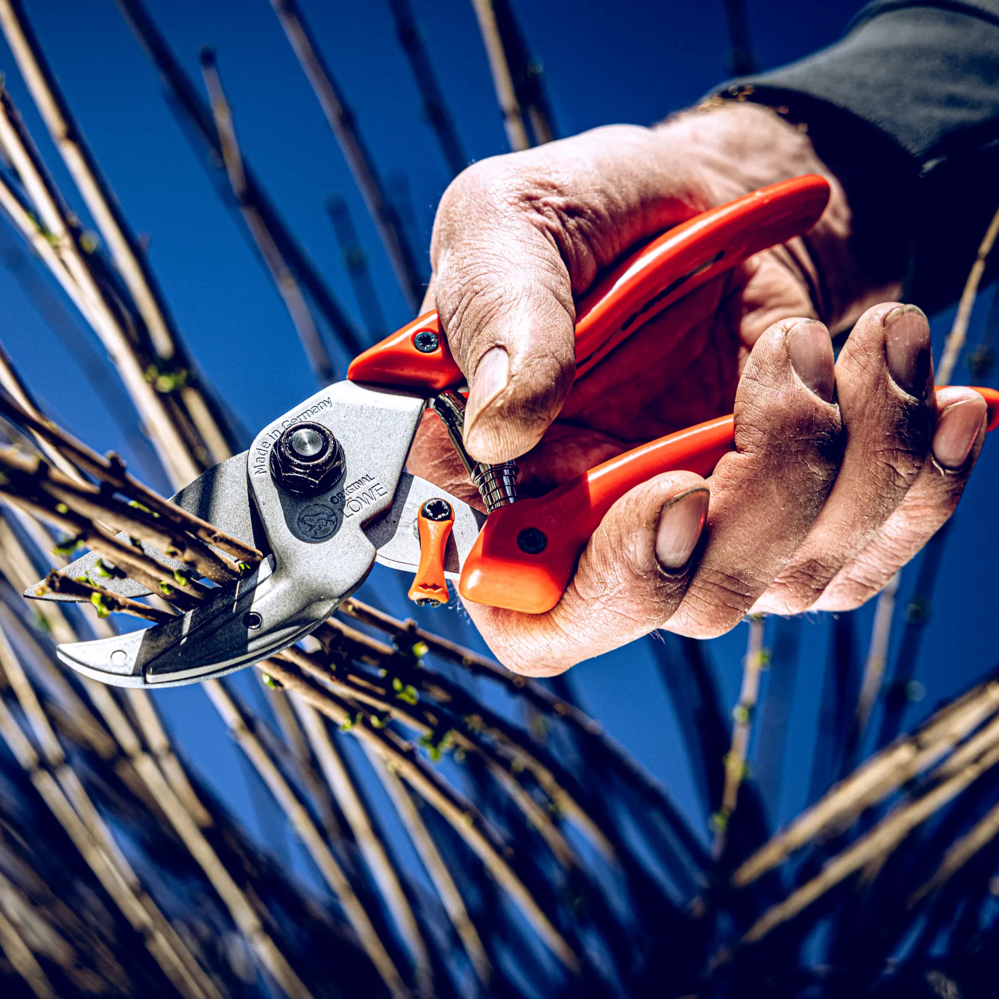A Original LÖWE 8 - Professional Power Cut - é uma tesoura híbrida para o corte potente de ramos fortes. Combina a potência das tesouras de bigorna com o corte preciso da geometria de bypass. Graças à sua grande capacidade de corte, a Original LÖWE 8 é a tesoura híbrida ideal para ramos de madeira dura com um grande diâmetro. Uma ferramenta de corte perfeita para os profissionais da fruticultura, viticultura e horticultura.